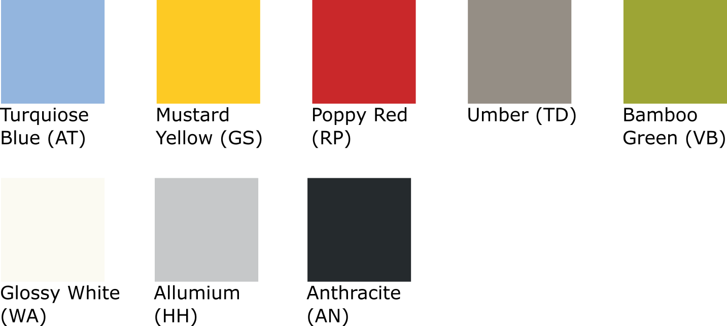 See the colour chart below for a graphical representation of each colour.